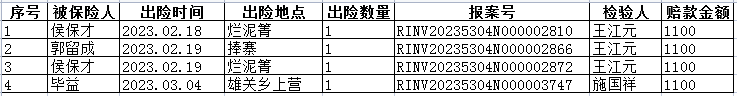 以下为2023年江川区养殖业保险查勘定损及理赔结果的公示,本次养殖业保险查勘理赔能繁母猪4件4头;育肥猪92件135头(详见以下公示清单),公示期3天,2023年3月10日至2023年3月12日,如有异议请与中国人民财产保险股份有限公司江川支公司联系,联系电话:8034495、95518。