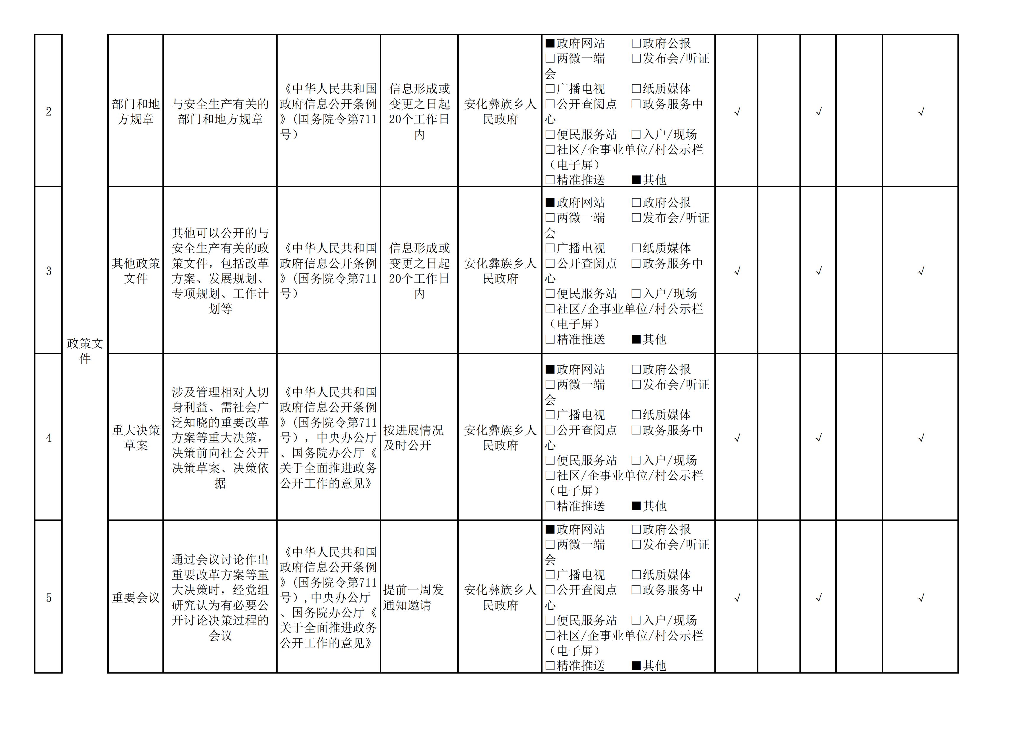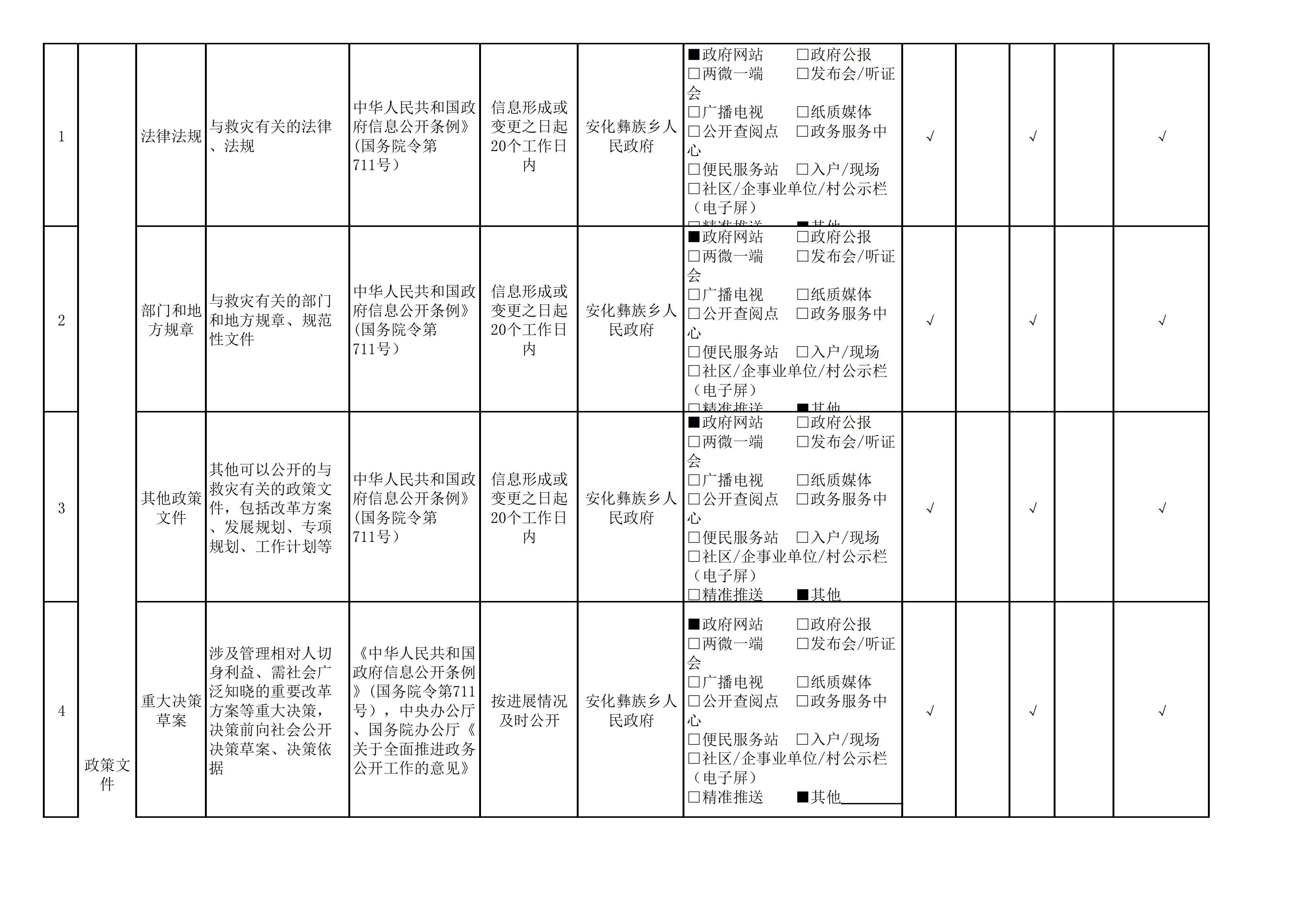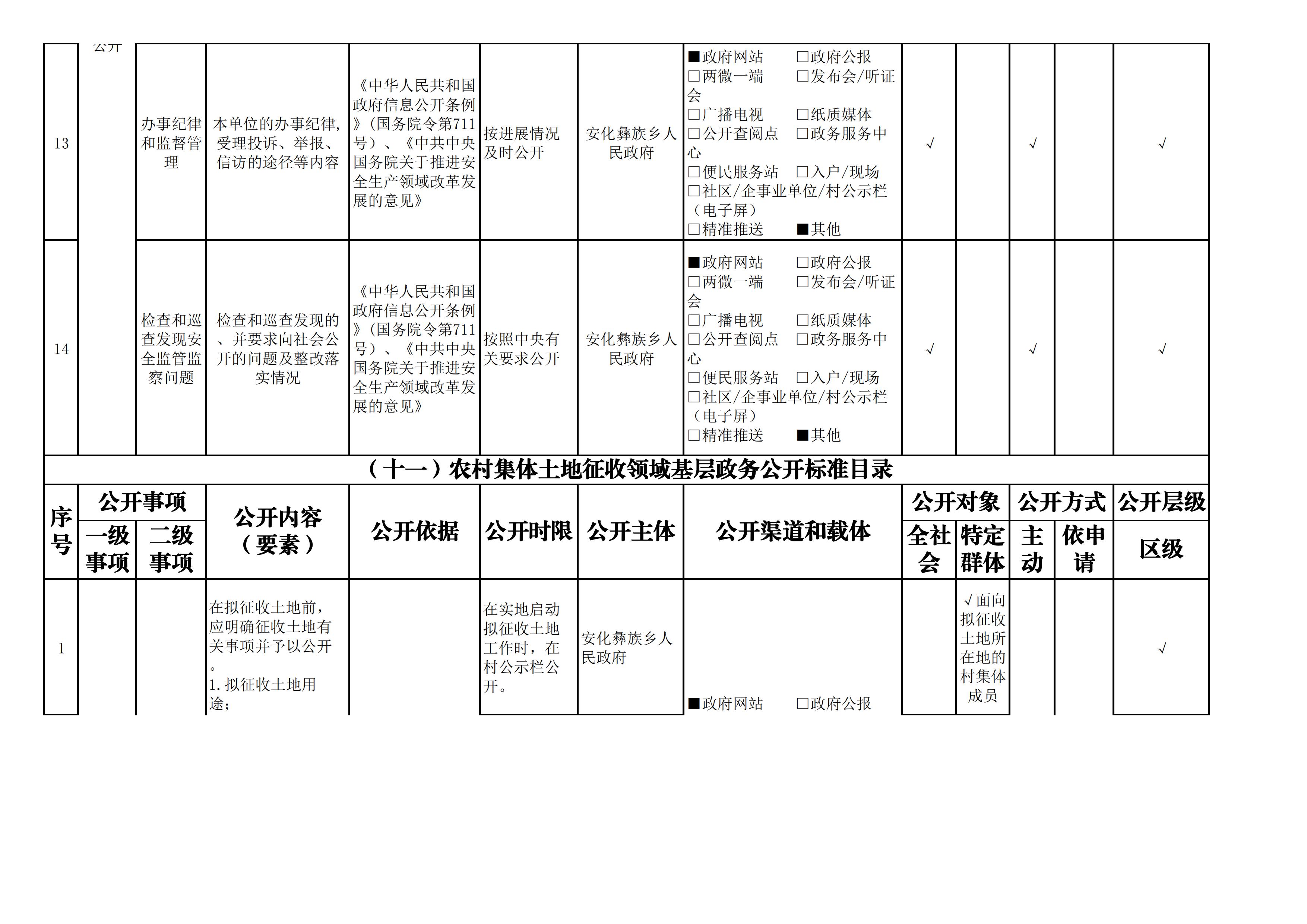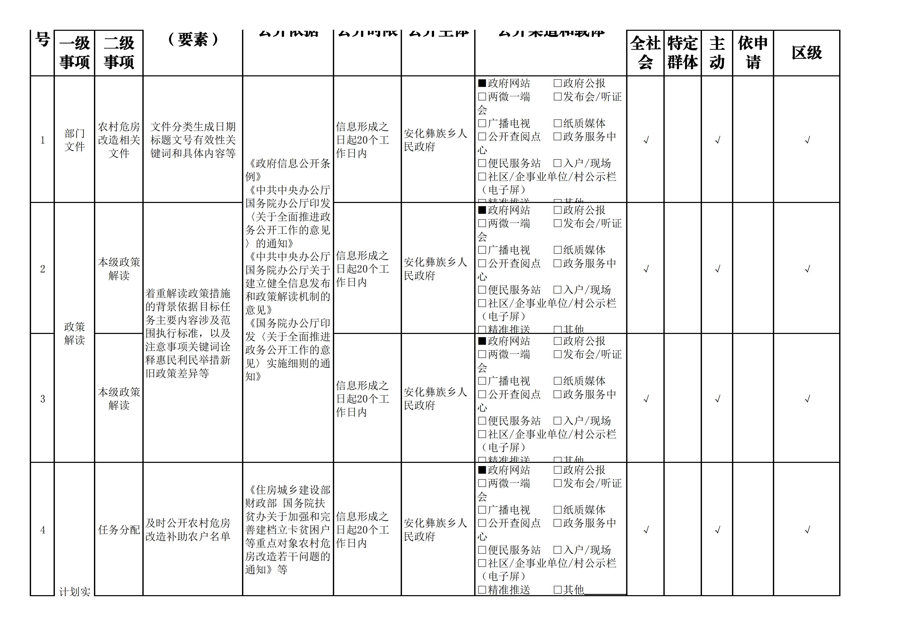 安化彝族乡人民政府信息公开目录