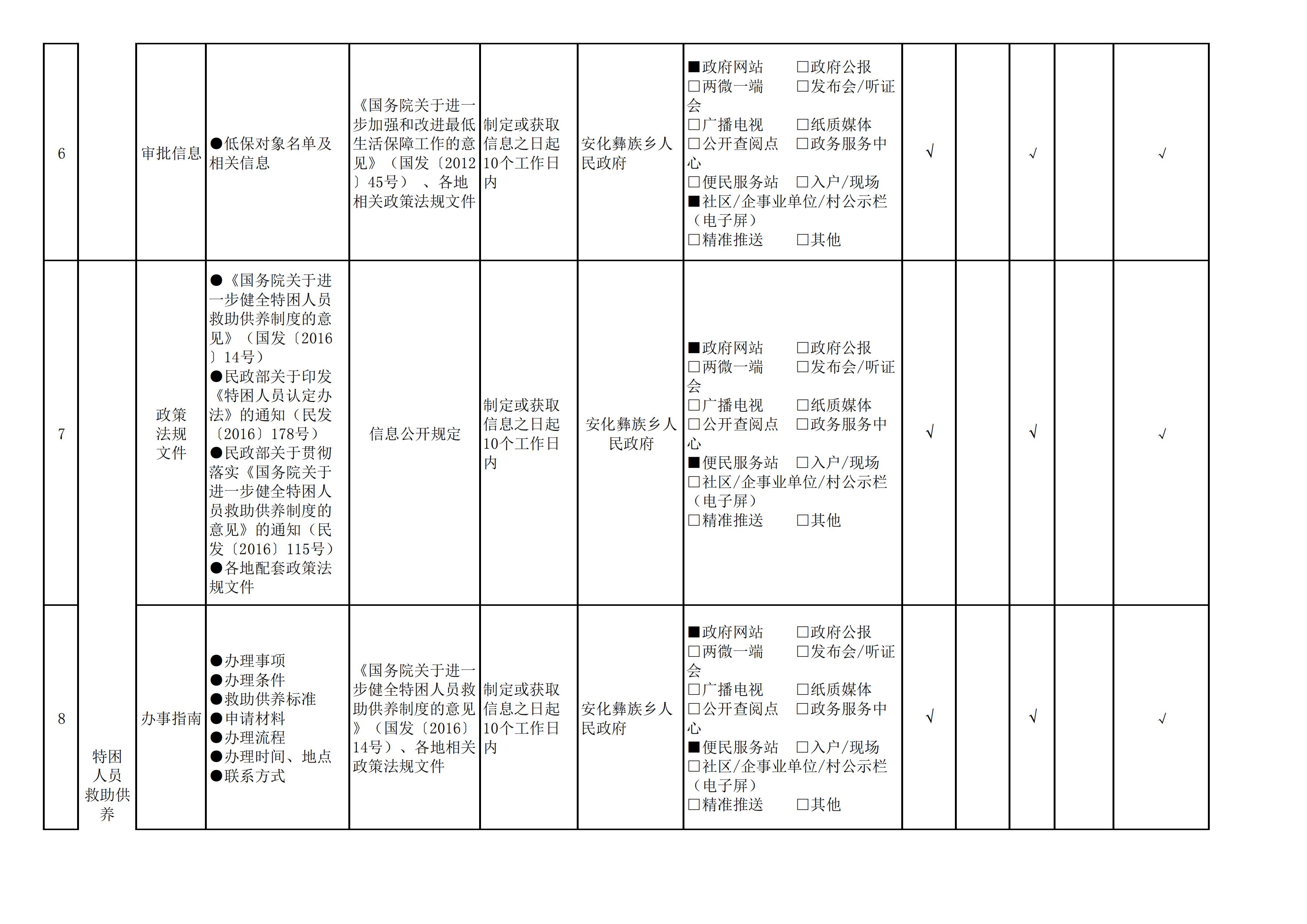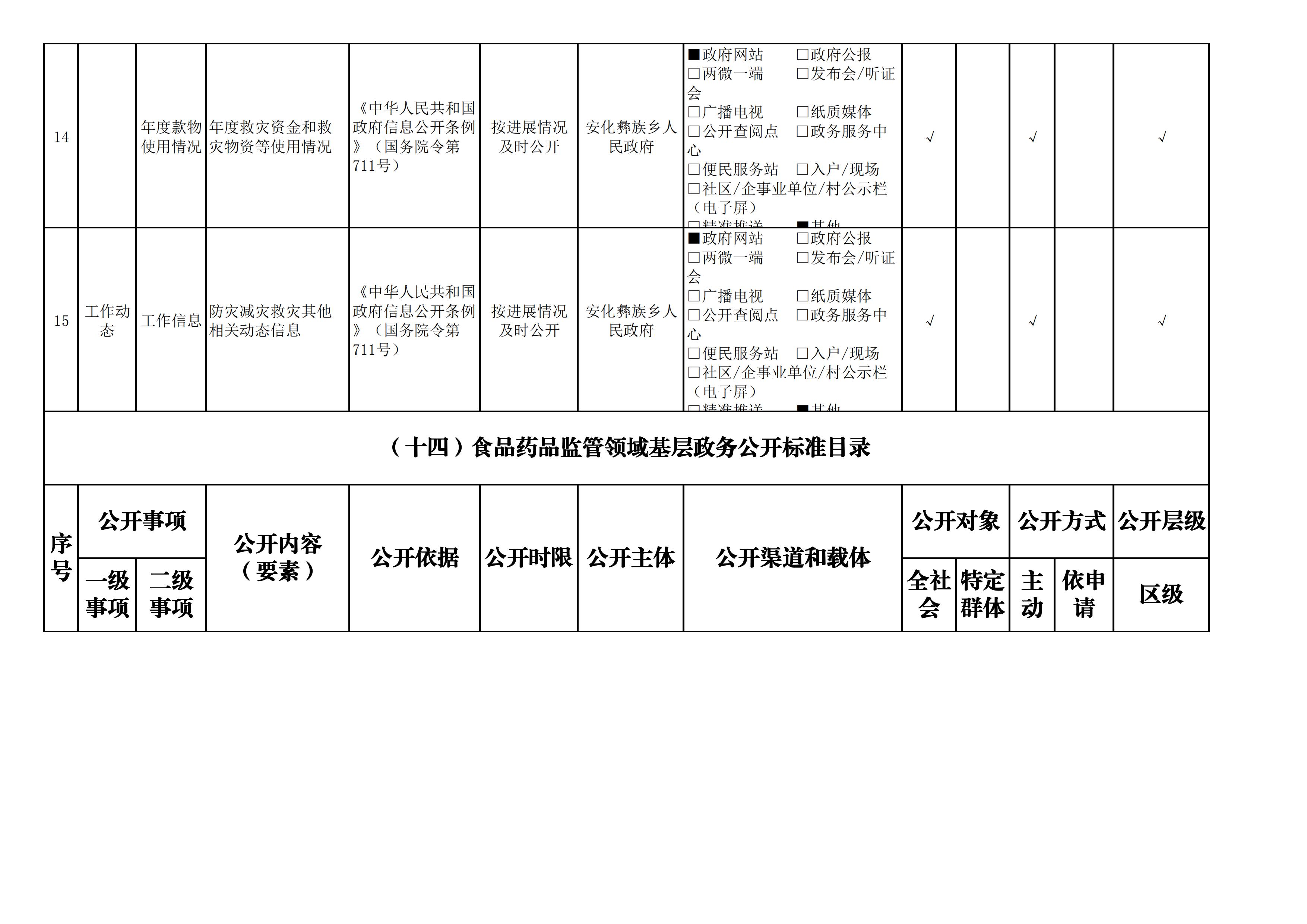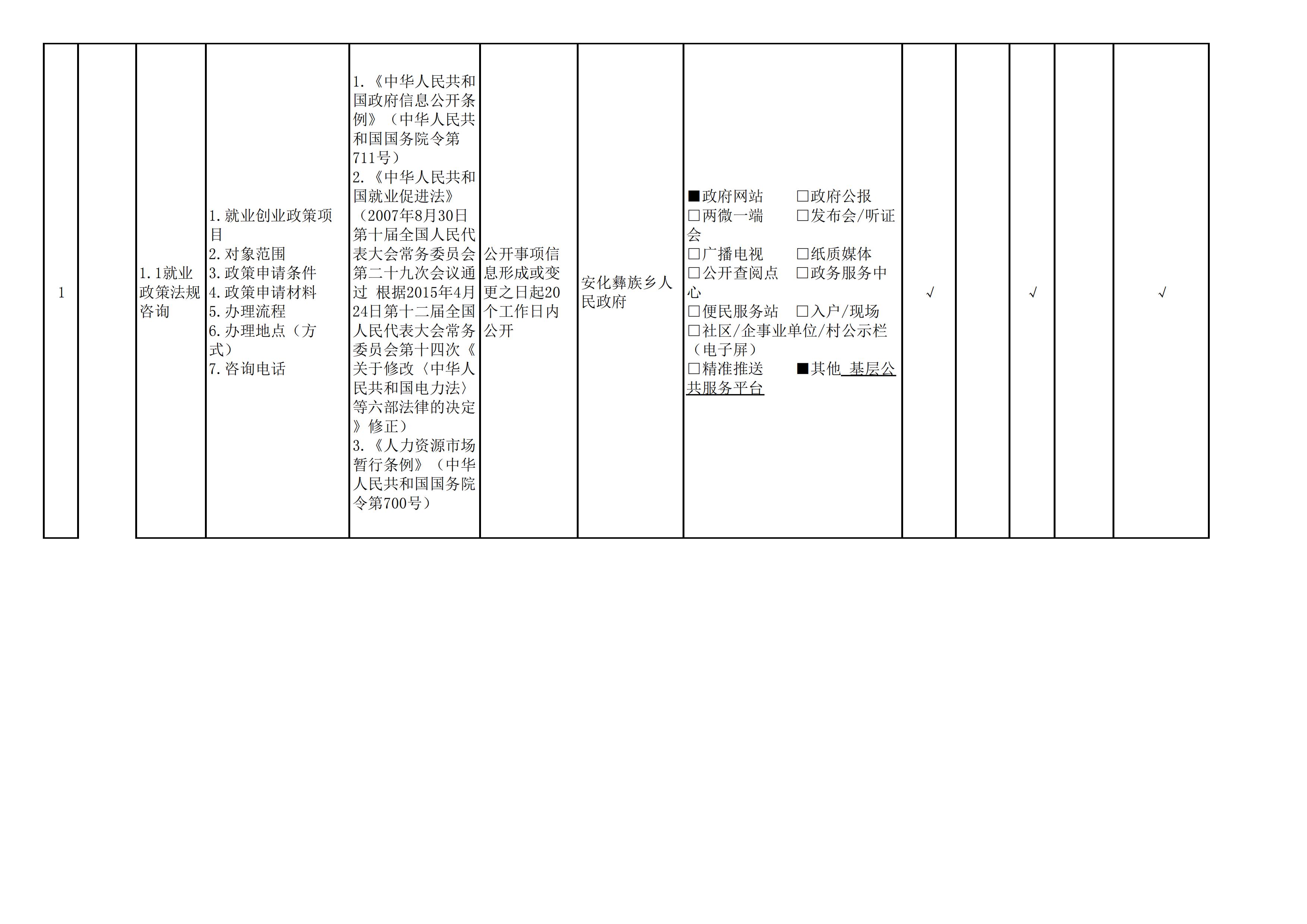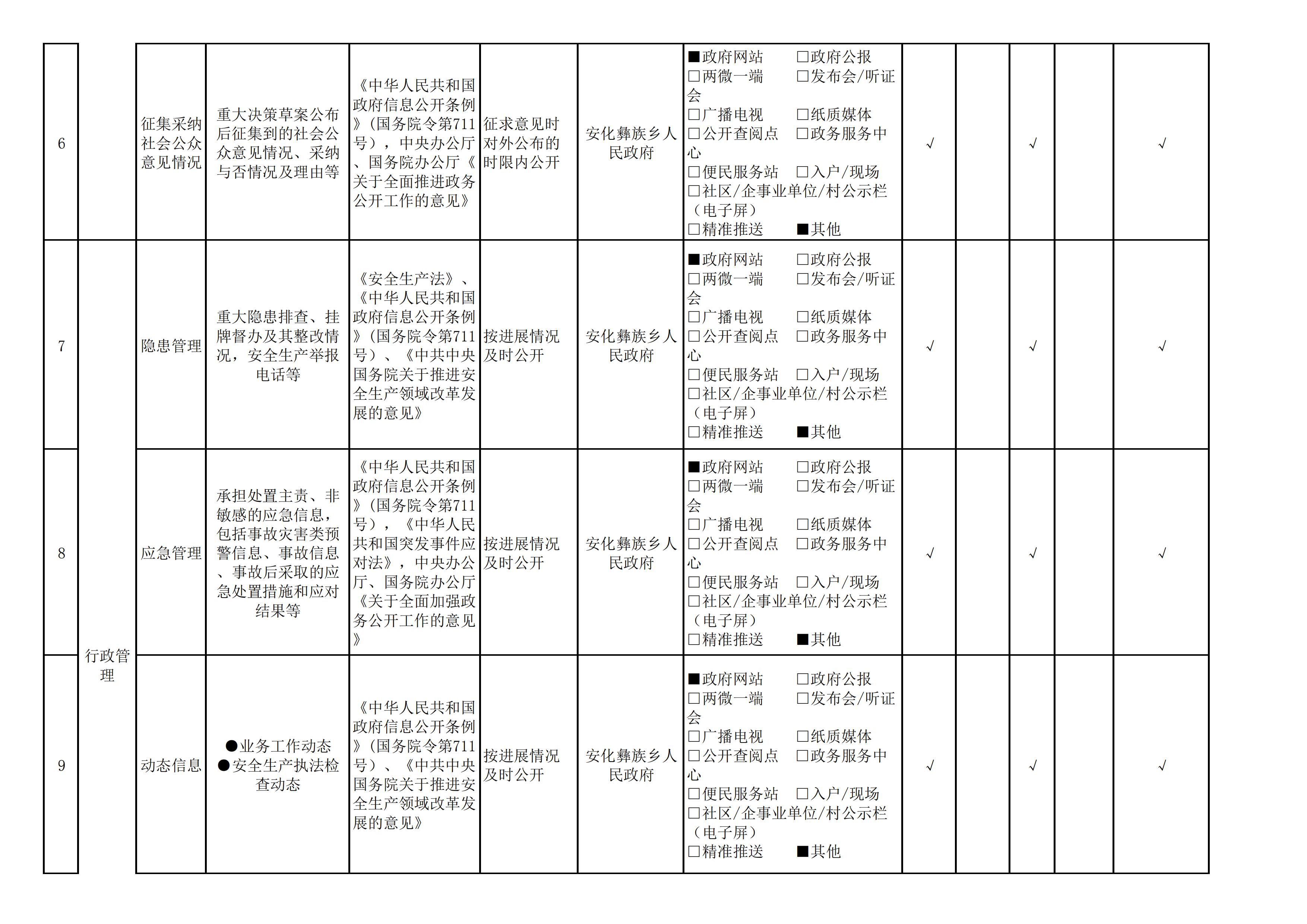 安化彝族乡人民政府信息公开目录