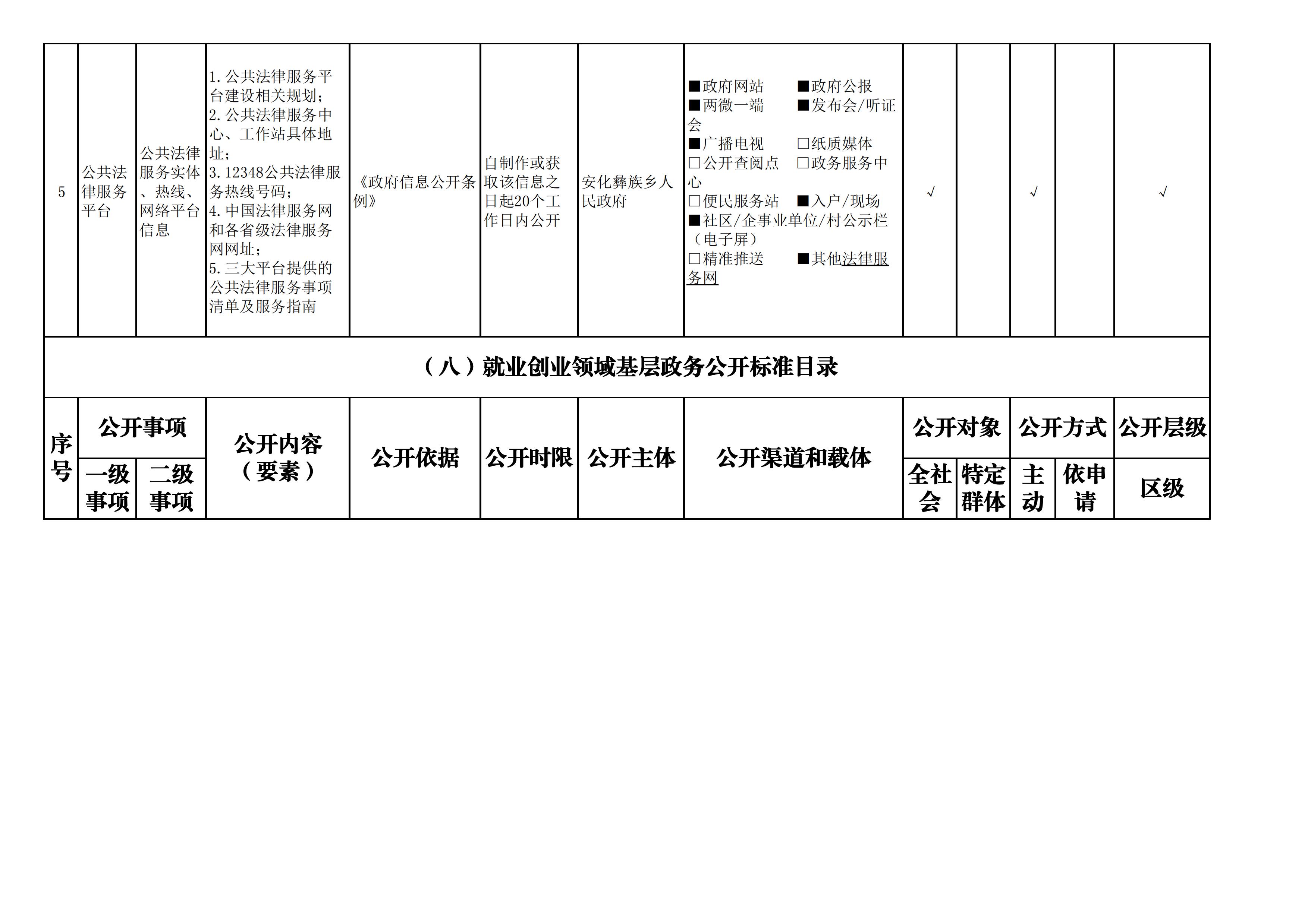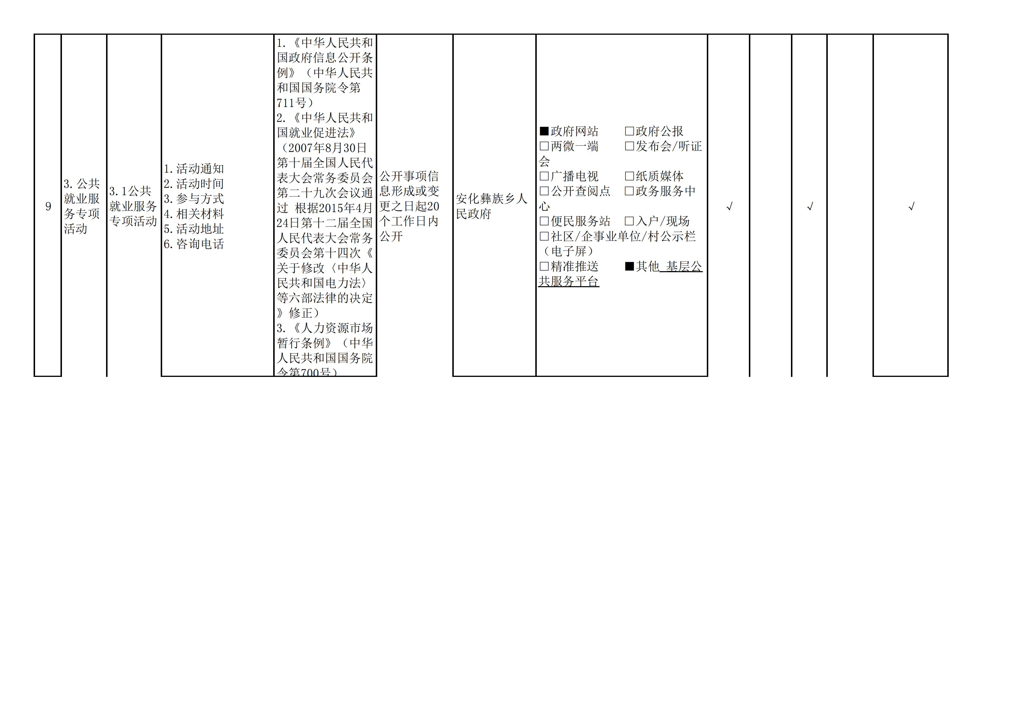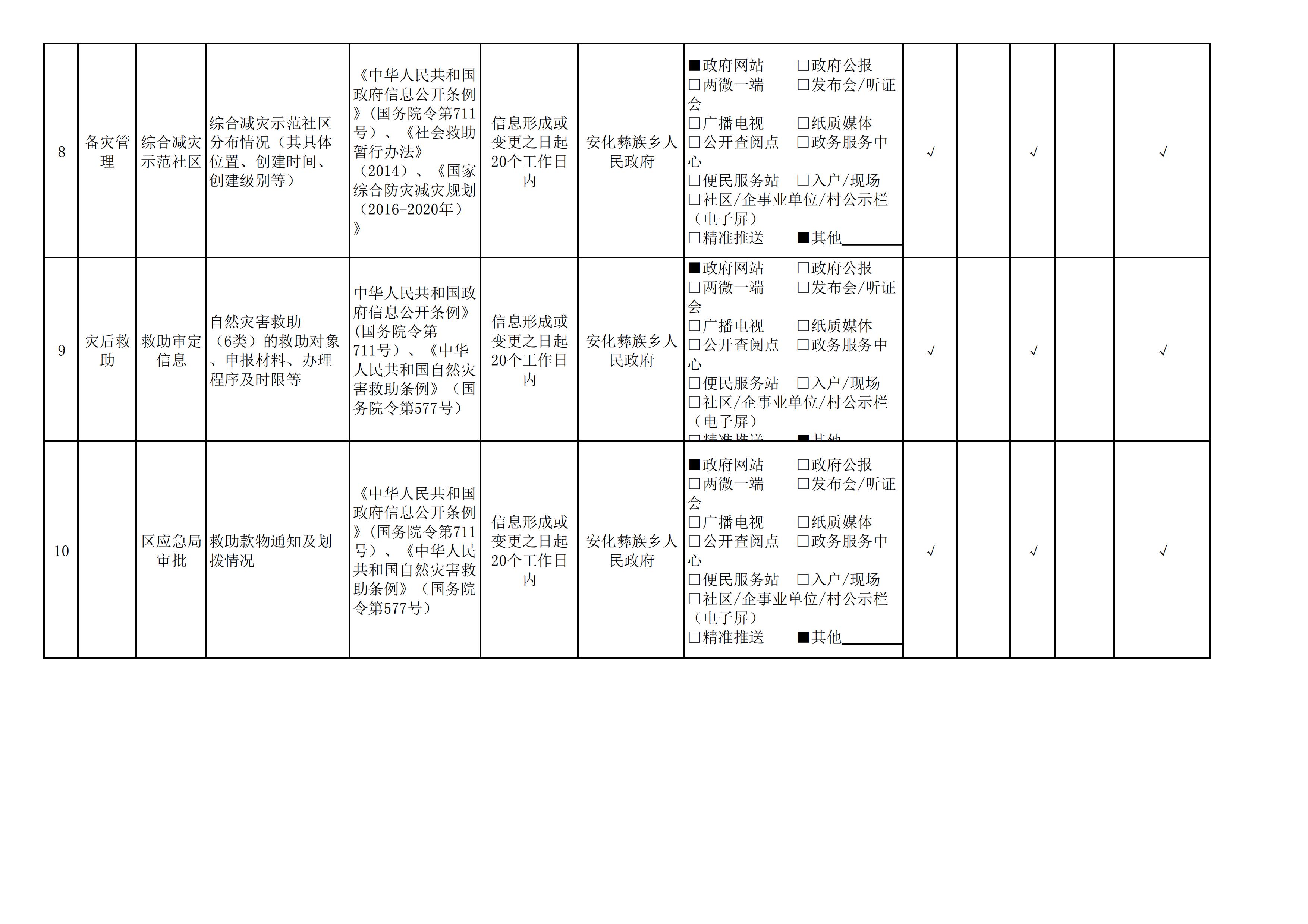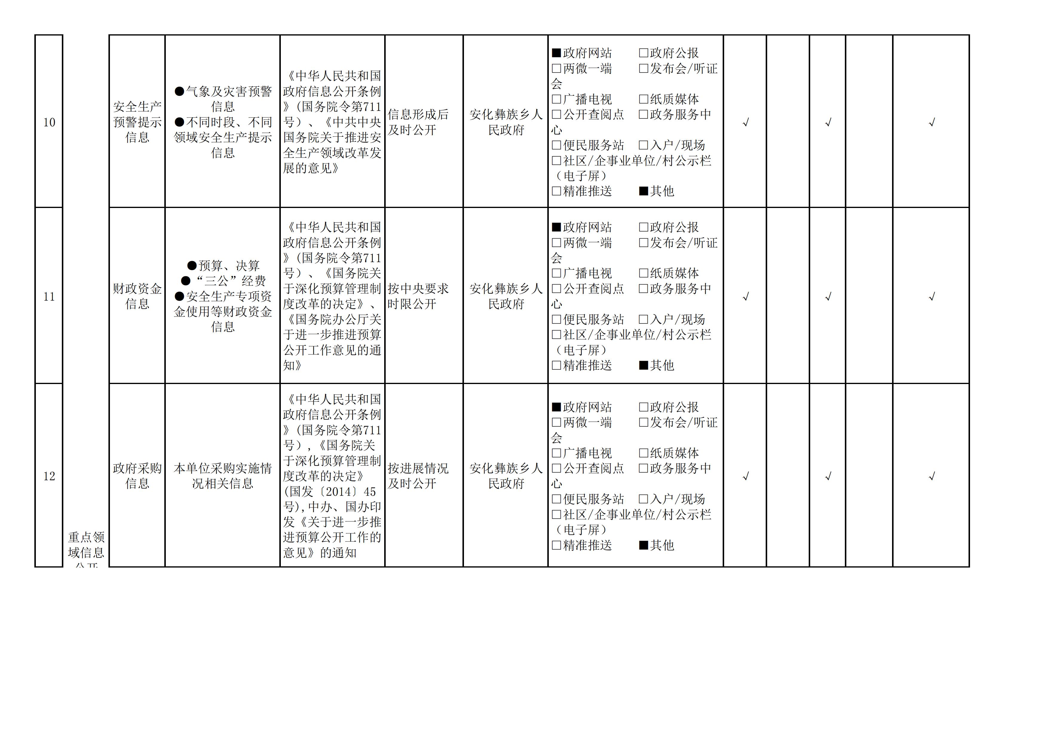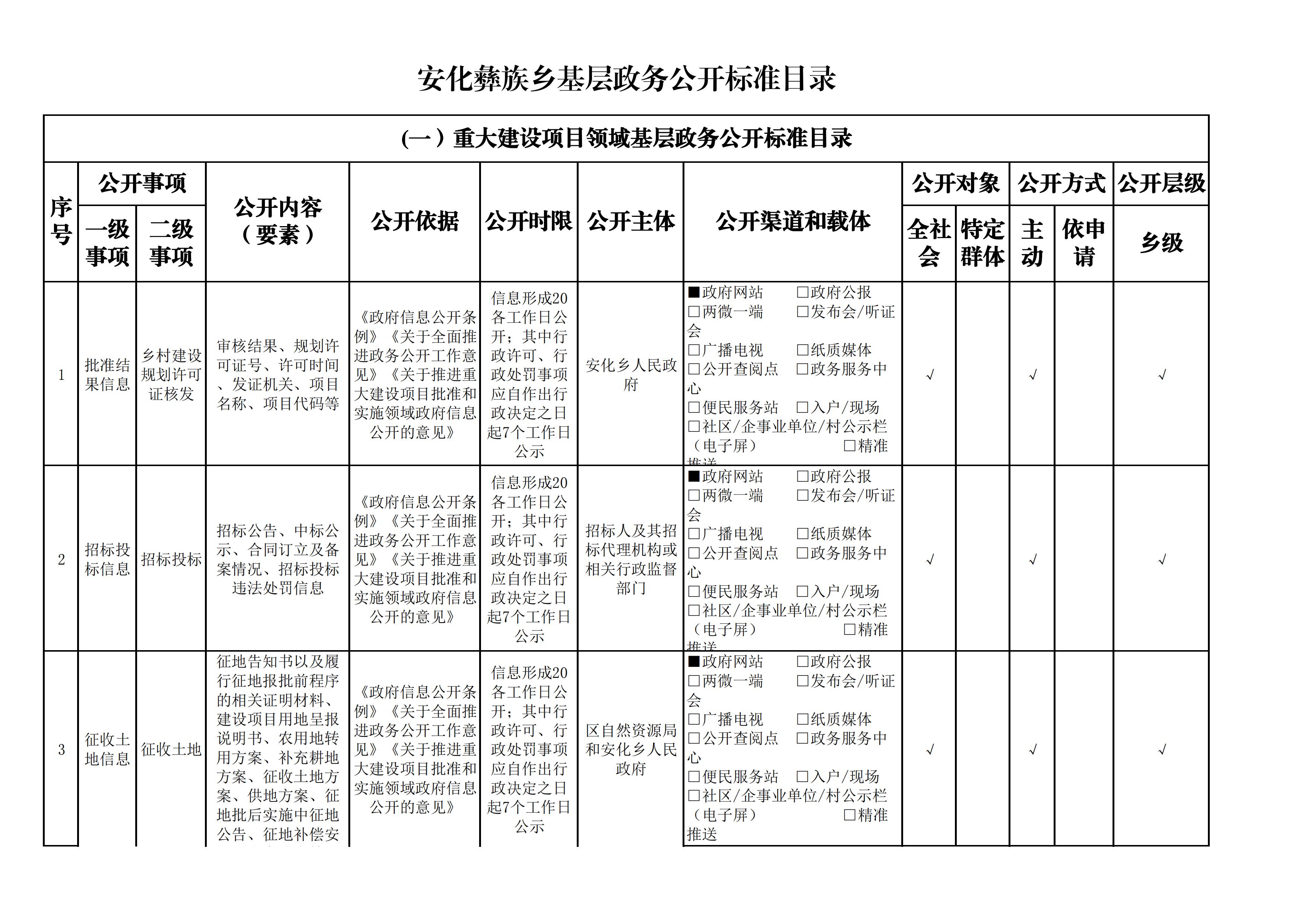 安化彝族乡人民政府信息公开目录