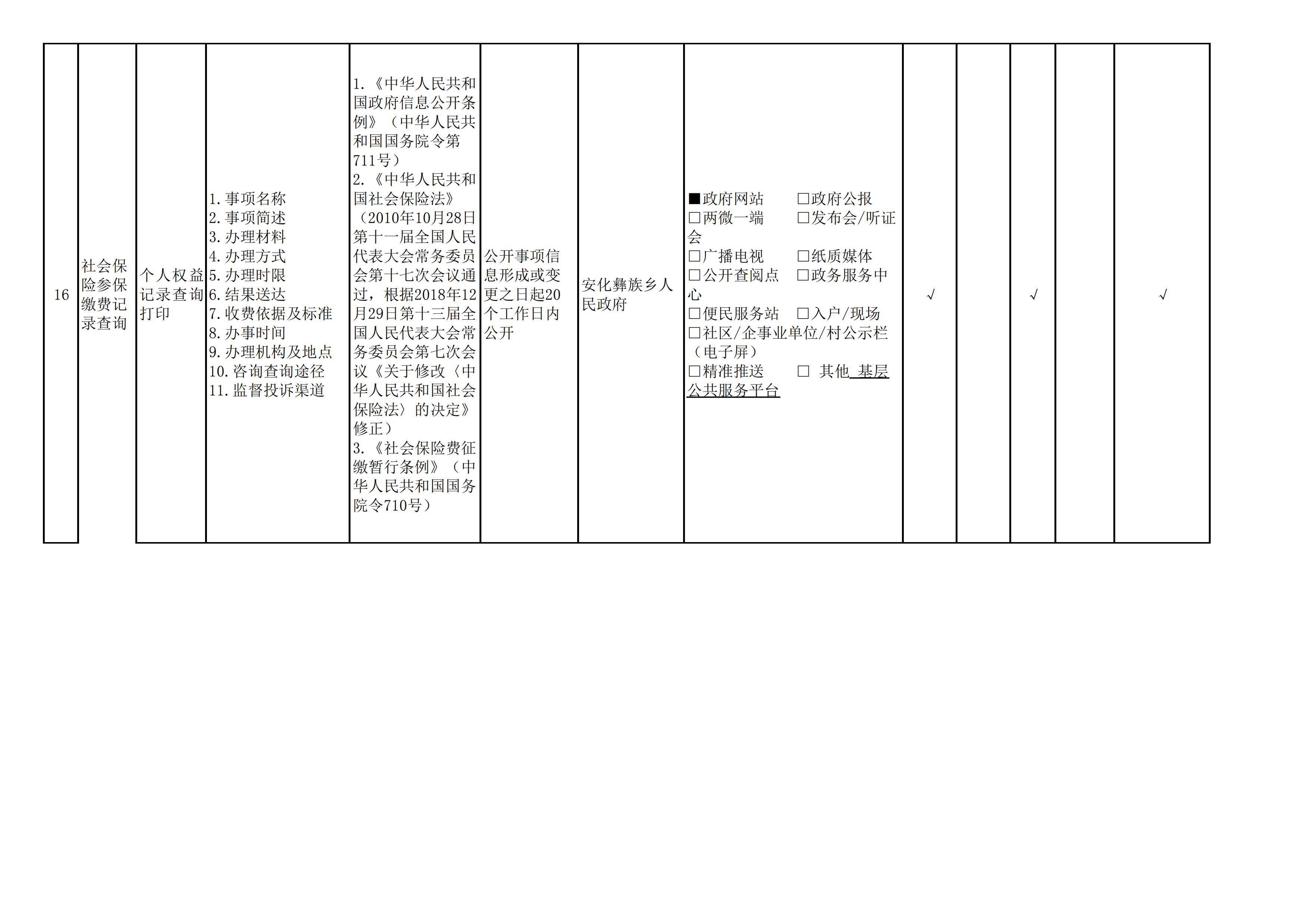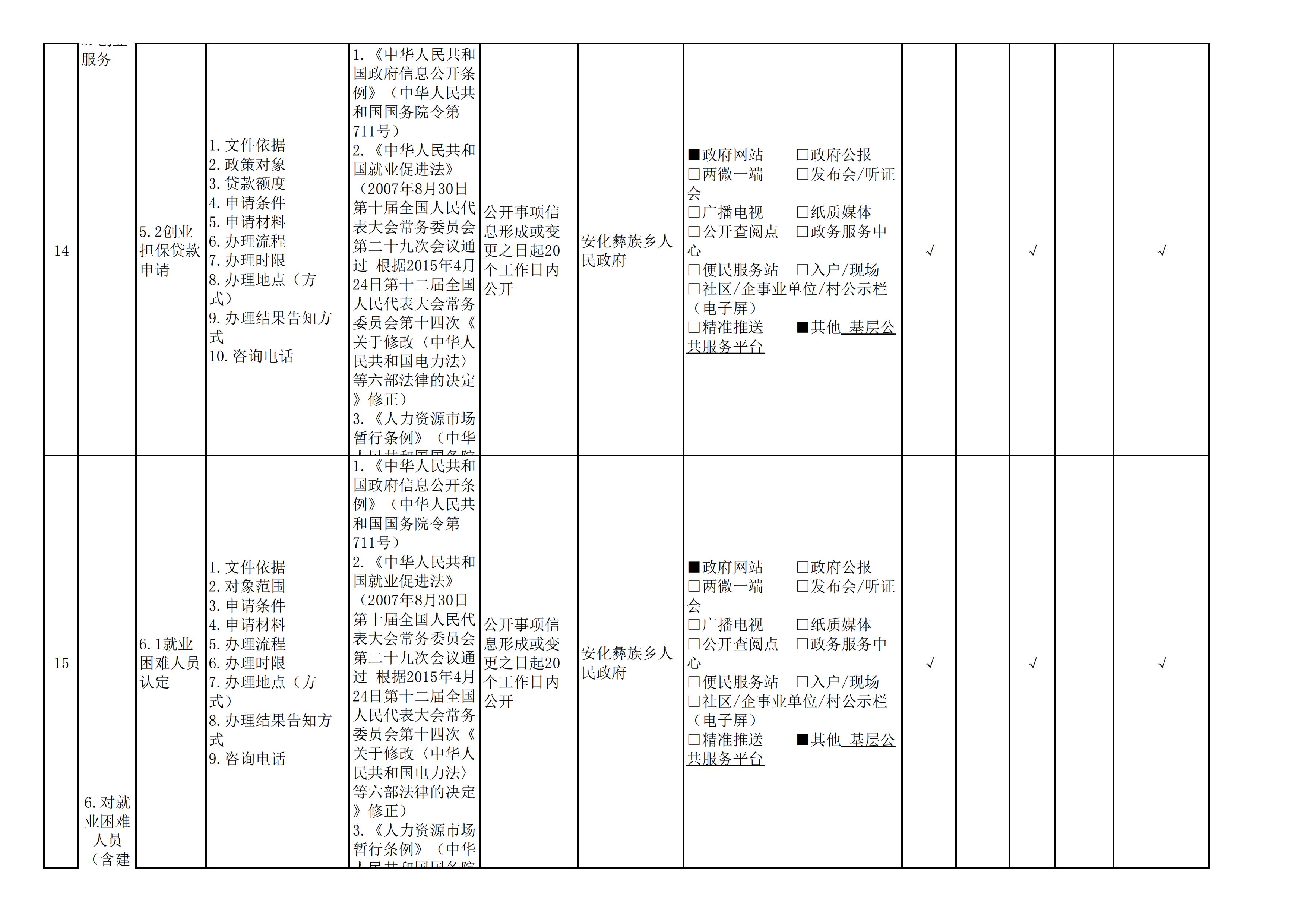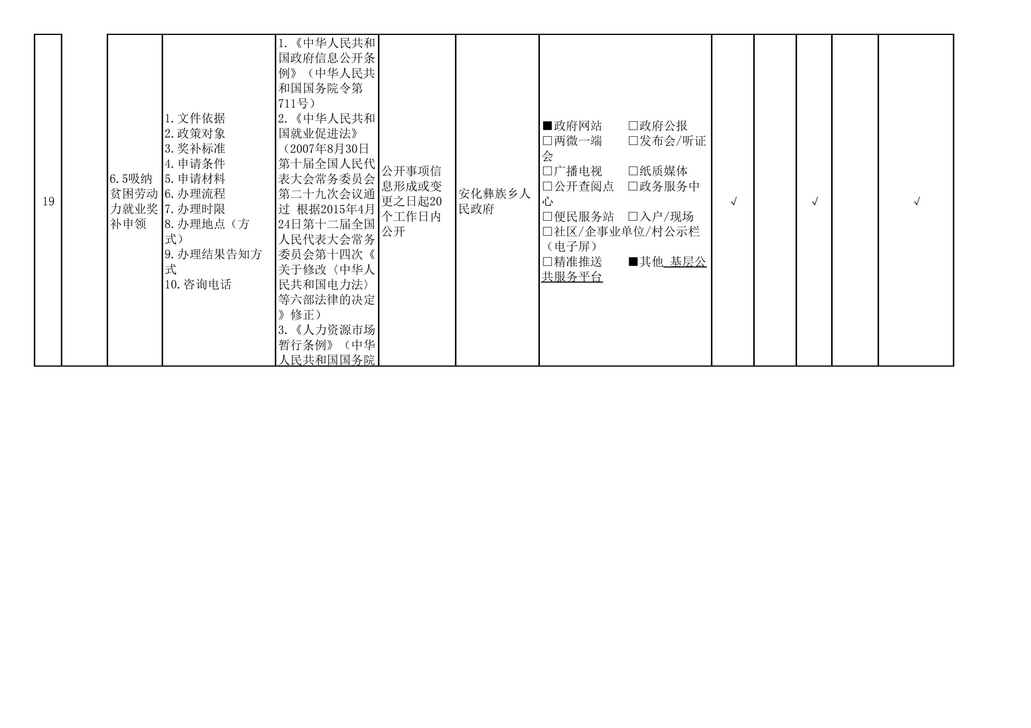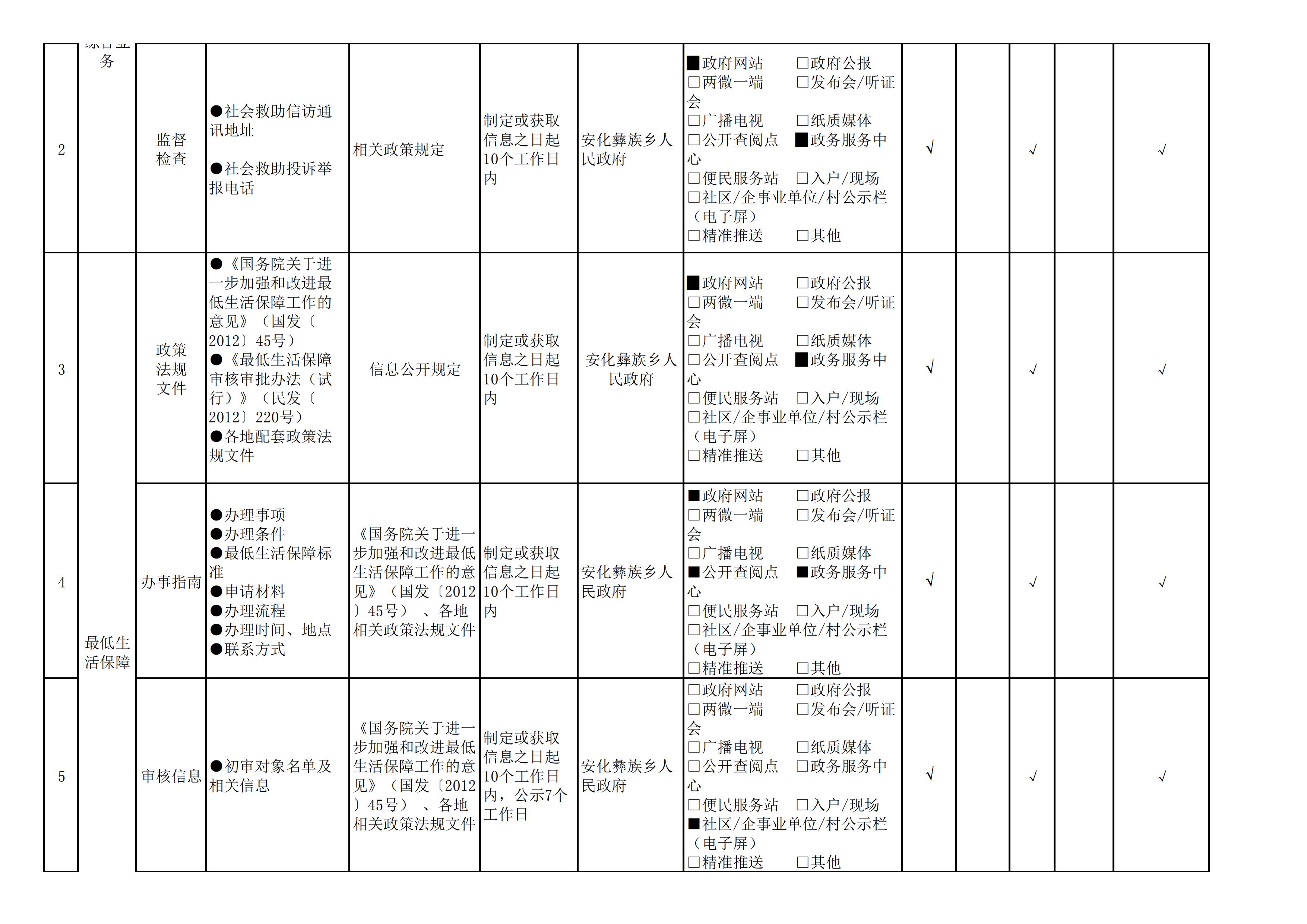 安化彝族乡人民政府信息公开目录