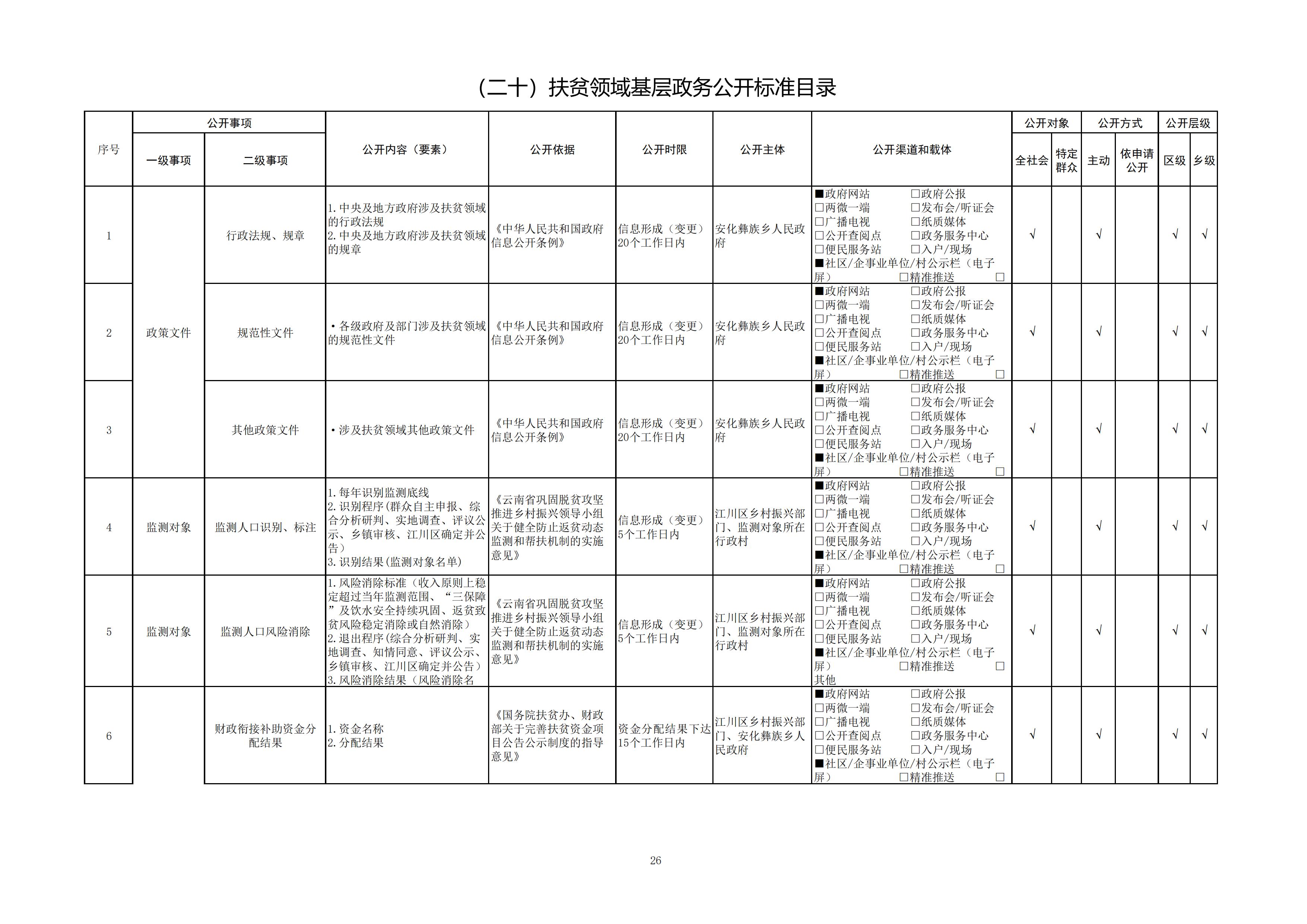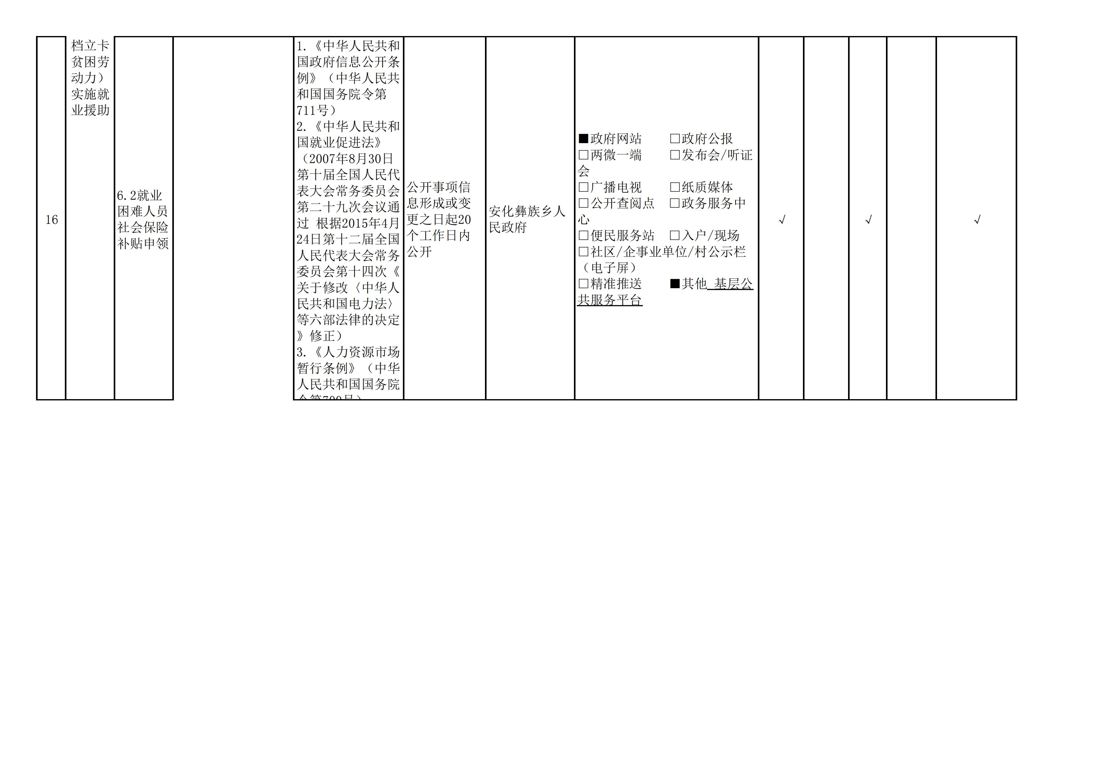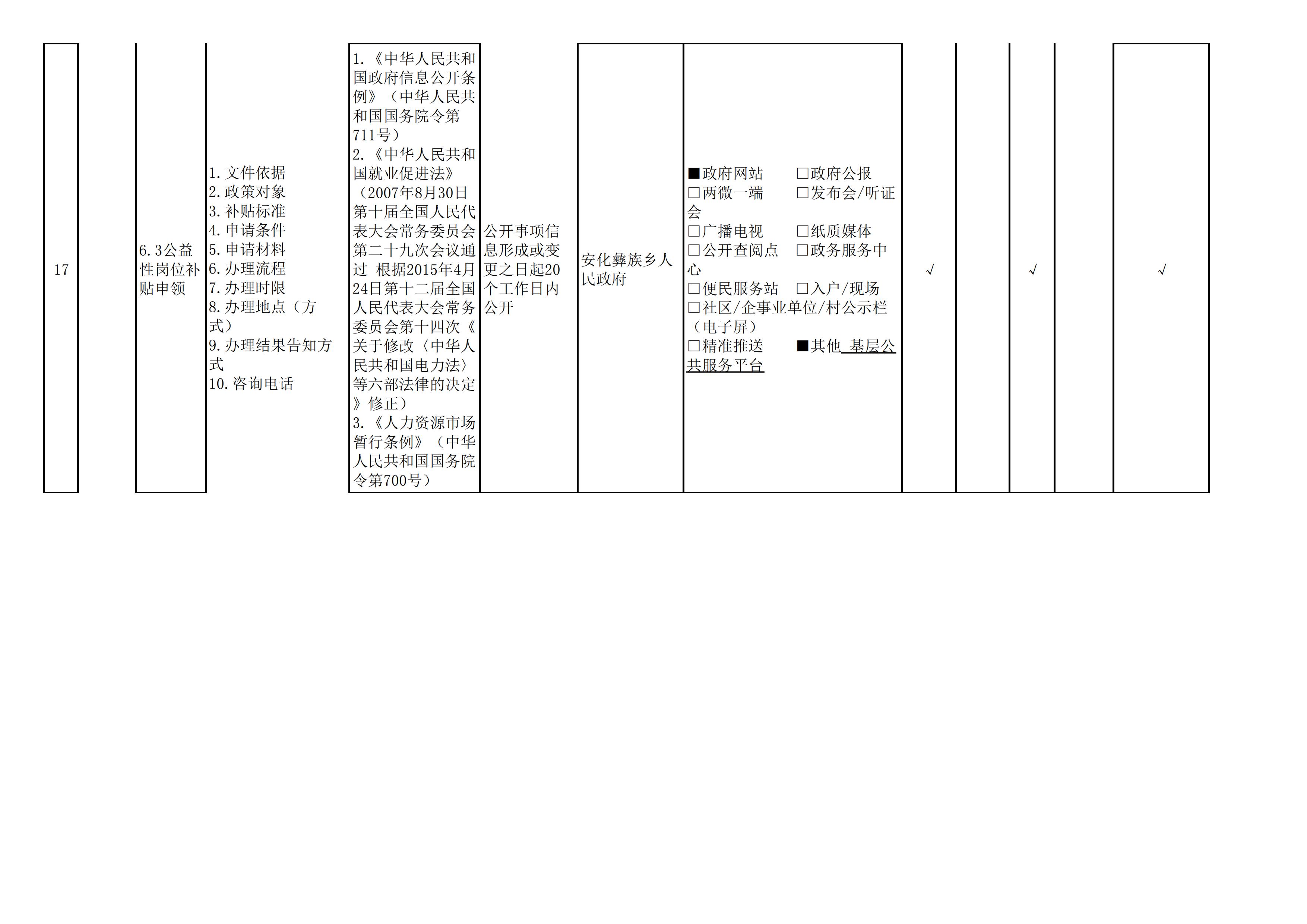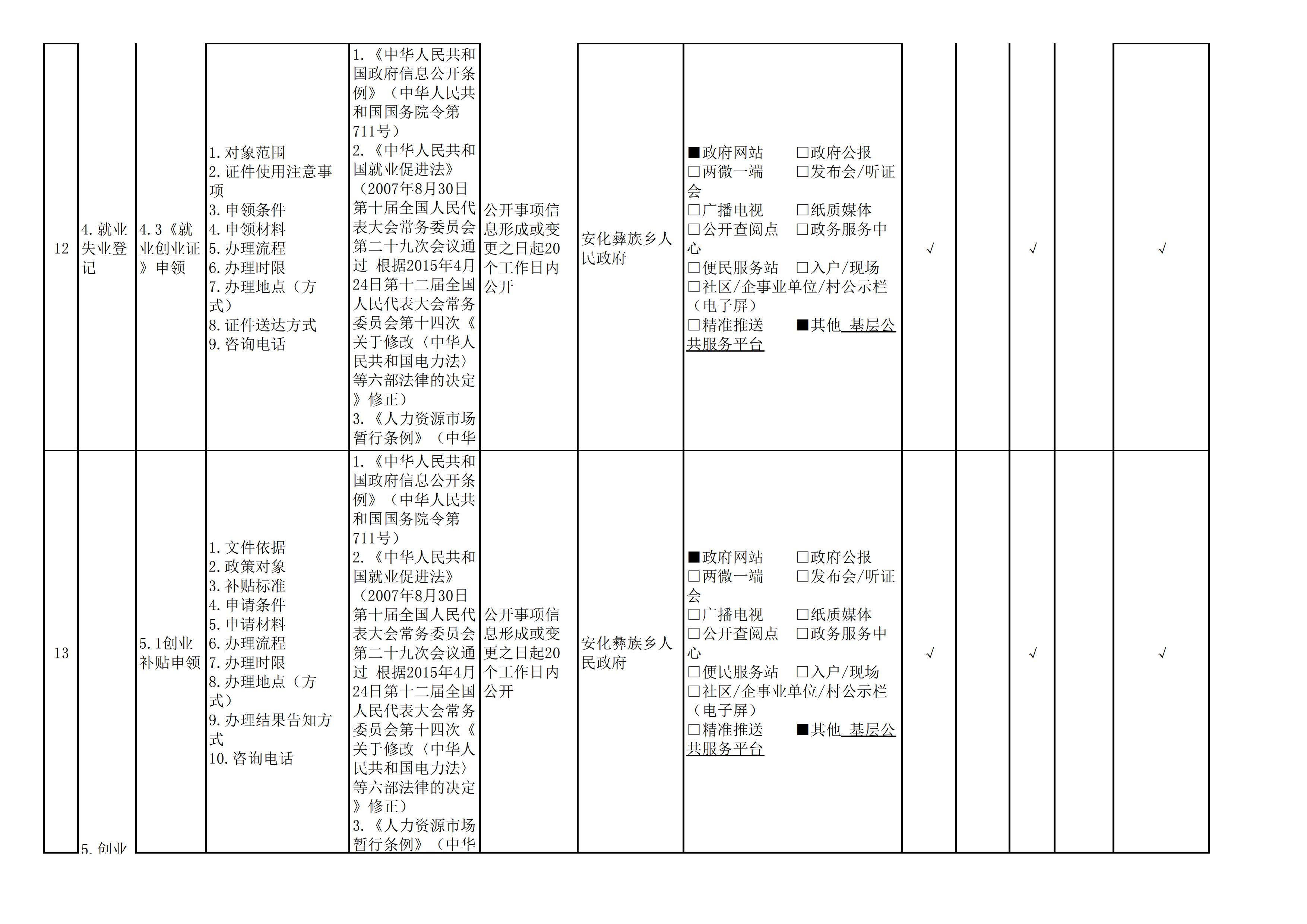安化彝族乡人民政府信息公开目录