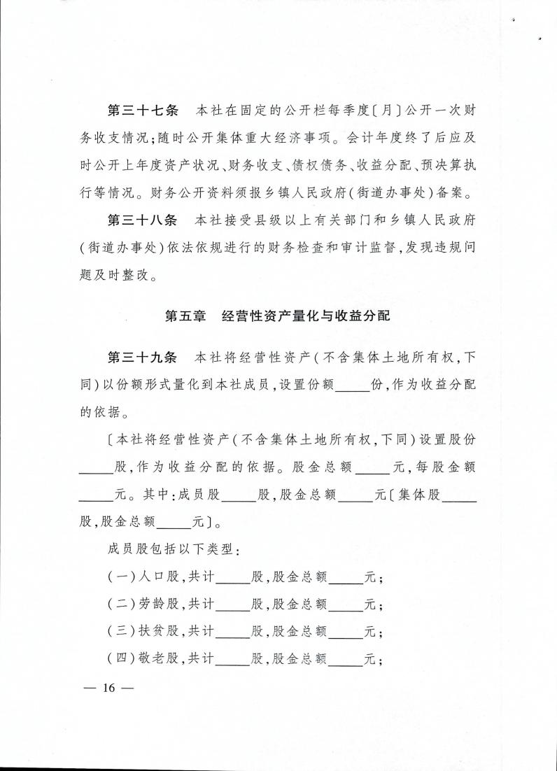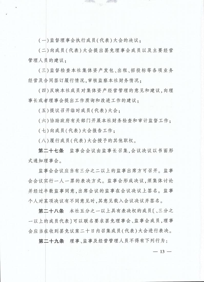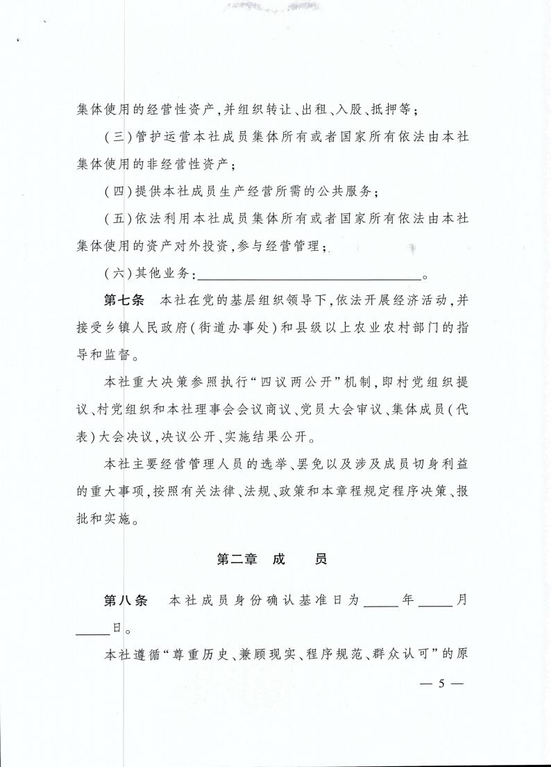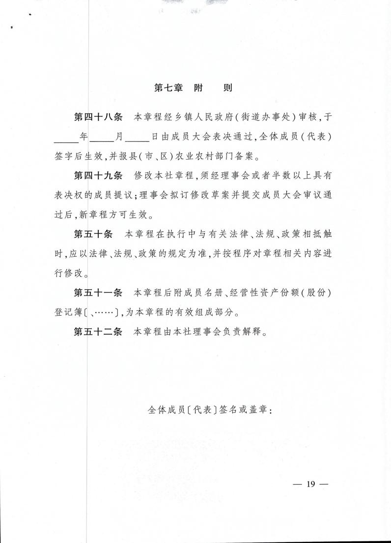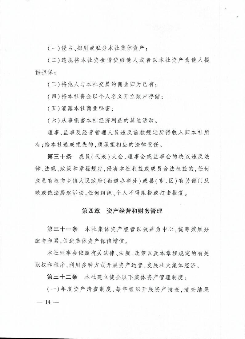 云南省农业农村厅关于转发《农村集体 经济组织示范章程(试行)》的通知 各州、市农业农村局: 现将《农业农村部关于印发〈农村集体经济组织示范章程(试行)〉的通知》(农政改发〔2020〕5号)转发给你们,请按照要求,抓好贯彻落实。 云南省农业农村厅 2021年2月20日 农业农村部关于印发 《农村集体经济组织示范章程(试行)》的通知 各省、自治区、直辖市农业农村(农牧)厅(局、委): 为促进农村集体经济组织规范发展,保障农村集体经济组织及其成员的合法权益,依据《中华人民共和国民法典》以及国家有关法律法规政策,我部拟定了《农村集体经济组织示范章程(试行)》,现予以印发。请各地参照本示范章程,指导农村集体经济组织制定或完善其章程。 农业农村部 2020年11月4日