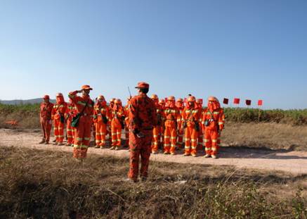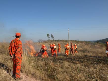 为切实提高江川县专业扑火队伍安全扑火作战能力,进一步规范火场指挥部处置森林火灾的程序和方法,提高应急处置能力, 2009 年2月7日 ,江川县森林防火指挥部对30名县专业扑火队员在前卫镇黄草坝灌木林地及农地内开展扑救森林火灾实战演习。