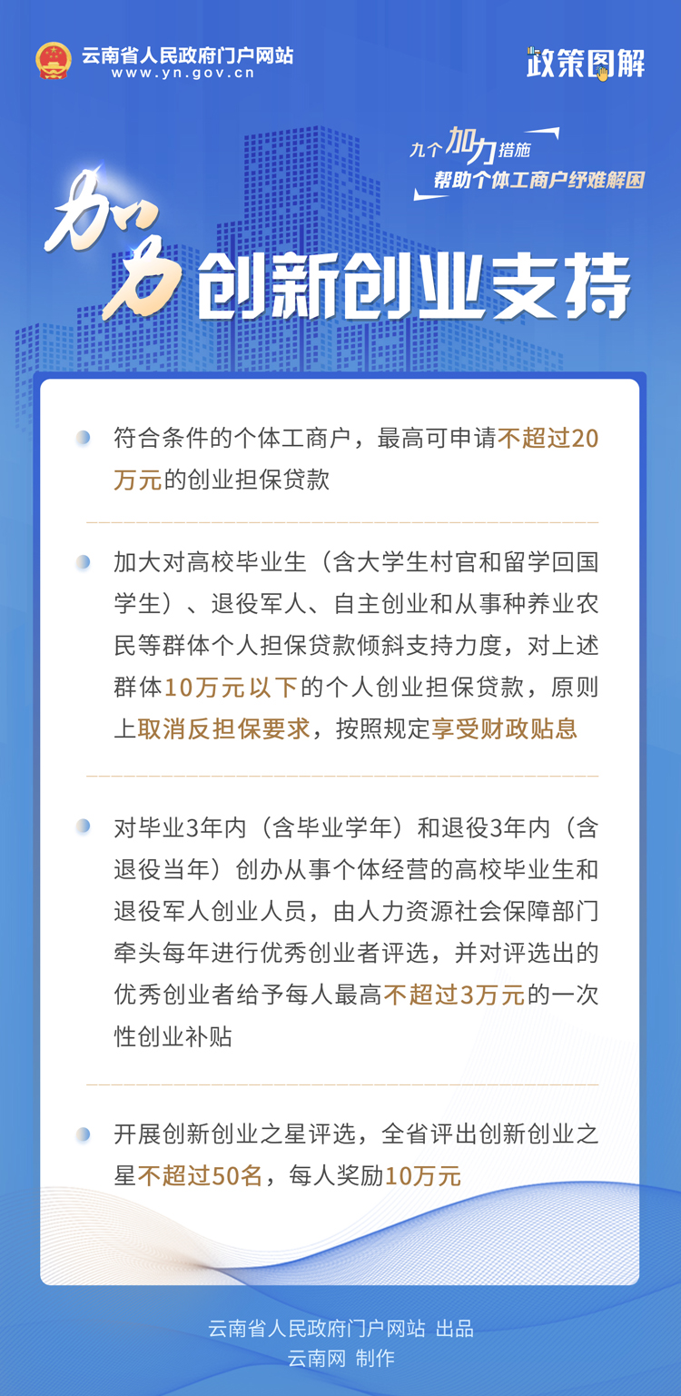 《云南省人民政府办公厅关于印发云南省扶持 个体工商户纾难解困工作方案的通知》图解