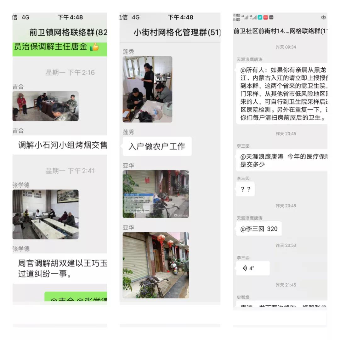 为进一步打牢基层社会治理工作基础,前卫镇坚持“4+4+4+N”工作法,以党建引领基层治理网格化服务管理为抓手,抓实网格设置、人员配备、实体运行、责任落实,突出重心下移、力量下沉,打通网格服务和治理“最后一公里”,着力构建全镇党组织领导下的共建共治共享基层网格化治理新格局,全力提升网格化社会治理能力。