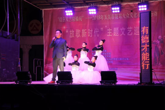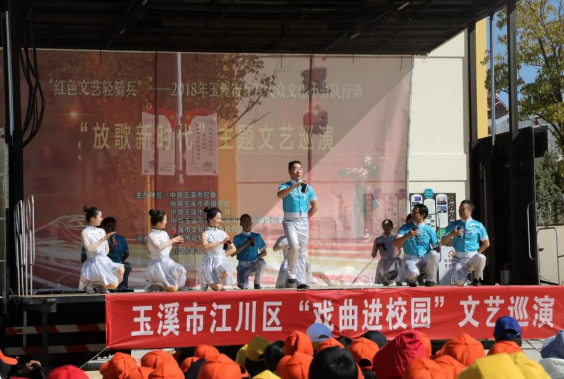 12月27日,2018年玉溪市“红色文艺轻骑兵”聂耳大众文化小分队 “放歌新时代”主题文艺巡演来到江川,为江川的群众带来了丰富多彩的节目演出。 首场演出在江川区九溪镇九溪中学举行。演出在恢弘大气的歌伴舞《又一个中国时代》中拉开了序幕,演出节目丰富多彩,不仅有二胡独奏《战马奔腾》、独唱《公民道德歌》,还有音乐快板《幸福玉溪》、花灯小戏《分家》、《特殊月饼》、《花街情》等,节目内容紧扣党的十九大精神、反映社会生活、贴近民生,演出了群众所喜闻乐见的节目。演出团还设置了与观众互动环节,进行了党的十九大精神及党性相关知识的有奖抢答。九溪中学全体师生现场观看了文艺巡演。 第二场演出于当天晚上在江川中心城区怡心园广场举行,精彩的表演吸引了不少市民前来观看,既丰富了大家的精神文化生活,又让群众在一场场精彩的演出中寓教于乐、陶冶身心、快乐生活。 本次演出按照党的十九大提出的“深入实施文化惠民工程,丰富群众性文化活动”的要求,以“红色文艺轻骑兵”巡演微传播方式,充分发挥文艺宣传党的大政方针,提振干部群众精气神的积极作用,深入贯彻落实习近平新时代中国特色社会主义思想和党的十九大精神,坚定文化自信,推动社会主义文化繁荣兴盛。